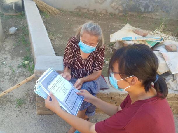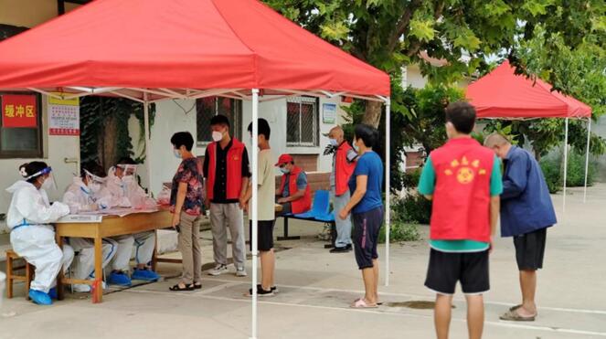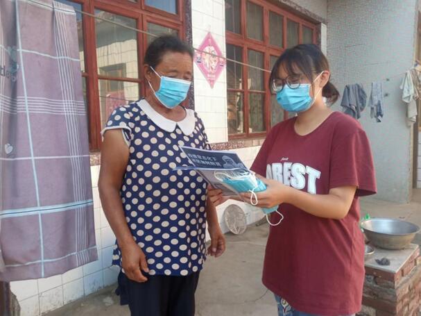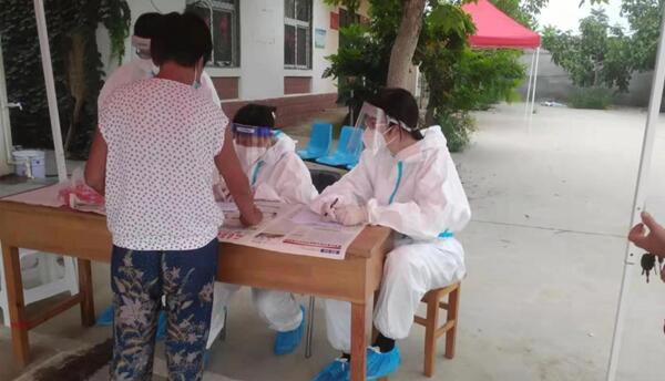 队长韩玉婷在组织队员的同时,也积极地完成自己的工作。在街上巡逻宣传、在村进出口执勤,在门口对进出的行人进行排查。同时,在做好安全防护前提下,协助村书记开展值班登记,详细填写台账,记录来往人员的信息。指导村民使用“冀石通”来进行核酸检测,减轻工作人员负担。