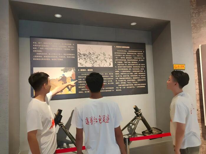 全体队员在讲解员的引领下参观抗敌斗争纪念馆,进入馆内,映入眼帘的是地道战的沙盘模型,可以直观地看到房连房、村连村的地道网络,这是当年抗战对敌的坚强地下堡垒。馆内一件件抗日时期留存下来的器具设施将队员们带回到了战火纷飞的峥嵘岁月,在场所有队员深受震撼和鼓舞。