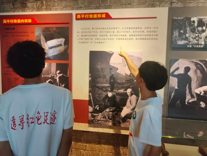 在高平地道战遗址,队员们认真观看展览,用心倾听讲解。一张张历史图片、一件件遗留藏品,见证了高平村抗日历史的峥嵘岁月。一段段感人至深的历史故事,一个个壮志凌云的英雄人物,激起党员对先烈的无限景仰,感受了革命先辈矢志不渝、勇于担当的革命精神,使大家深刻体会到今天的生活来之不易。