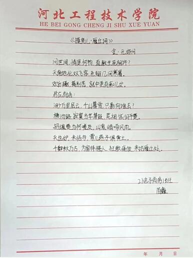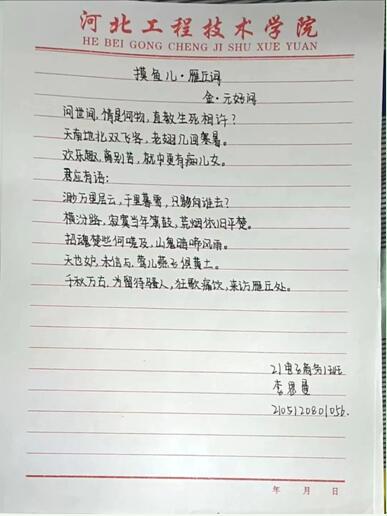 通过此次活动,同学们借此机会认真抄写,仔细体会与古人来一场跨时空的交流,体会诗人当时的处境。提升了自己的文化修养,优秀的文化知识潜移默化到每一位同学的心中。
