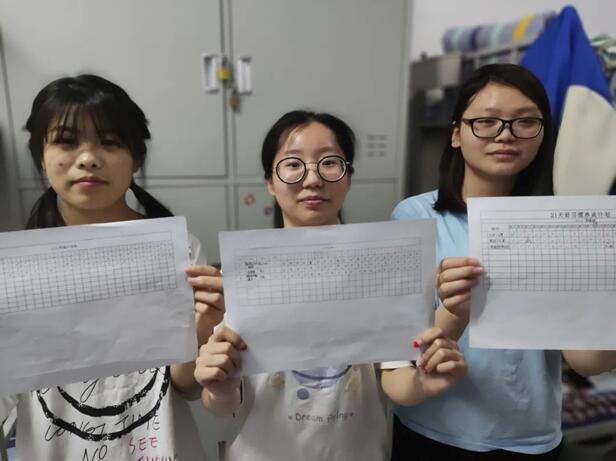 女生1号楼348宿舍成员在民主生活会上每位同学针对自己的生活习惯问题进行了现状陈述、问题和改进措施。刘蕊同学作息规律、三餐按时吃饭,认真打扫宿舍卫生,内务安静,每天6点跑步打卡是大家学习的榜样,宿舍成员达成“早中晚”打扫宿舍卫生和晚上6点一起keep的作息表。