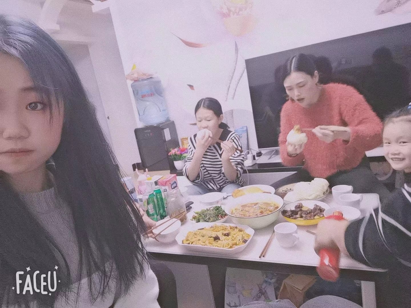 享受着合家欢聚的快乐,