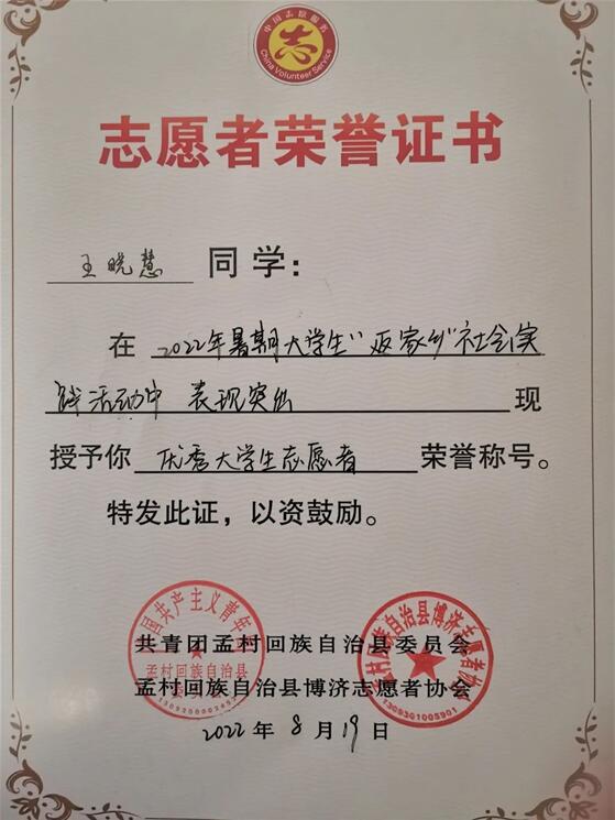 助力疫情防控,贡献青春力量。为进一步做好疫情常态化防控工作,精准落实管控措施,倡导健康文明生活方式,提高社区居民的疫情防范意识。球王会官网球王会王晓慧同学,作为一名大三的员工,利用假期时间在沧州市劳动花园社区牛进庄乡进行志愿服务活动。无惧高温、步履不停,全力以赴,积极向居民普及科学防疫知识。