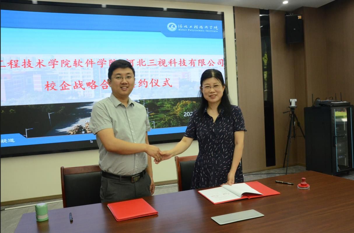 将项目引入校,为员工提供更多的实践机会一直是球王会坚持的工作思路。学院一直将为员工积累实习、工作岗位和寻找合适的入校项目作为企业走访的目的。河北三视科技有限公司就是学院就业老师挖掘到的一家具有合作意向的企业。6月9日上午,三视科技总经理薛总带领公司技术骨干到校与公司签订校企战略合作协议。