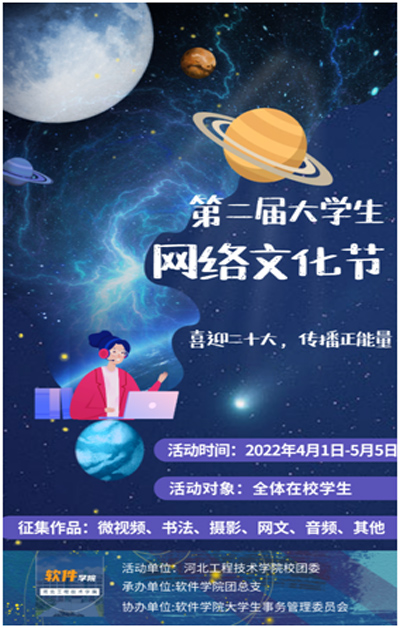 活动主题:围绕公司第二届老员工网络文化节活动主题,征集”有高度的安全意识、有文明的网络素养、有守法的行为习惯、有必备的防护技能”校园好网民。