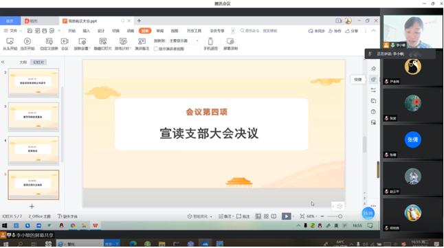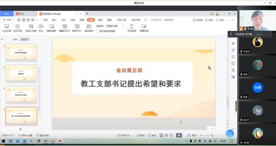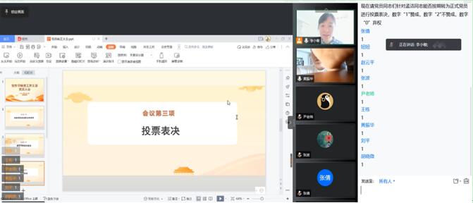 2022年5月3日下午4点30分,球王会教工党支部在腾讯会议召开线上预备党员的转正大会。参加此次会议的有:软件公司党总支书记王亚杰、教工党支部书记李小敏,宣传委员胡晓微,组织委员赵晓辉等18名党员同志。