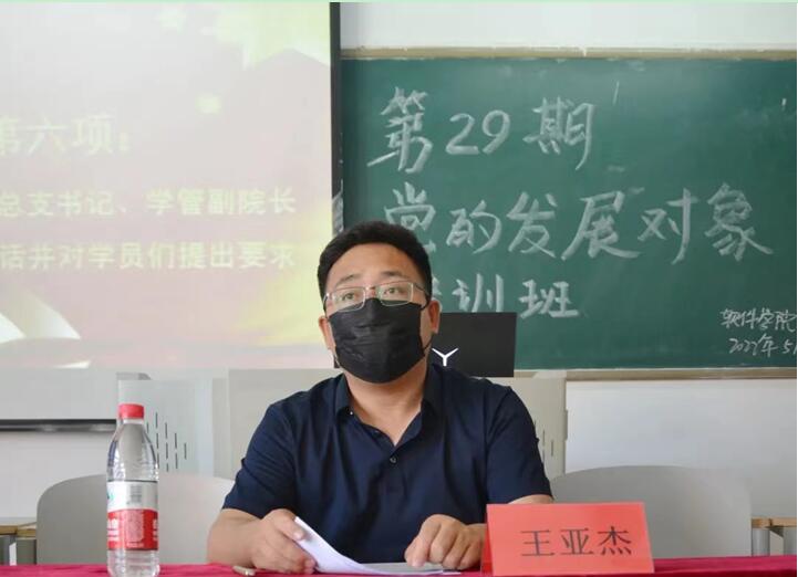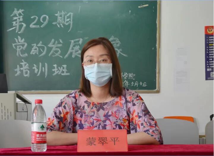 为深入贯彻落实习近平新时代中国特色社会主义思想,端正入党动机,深入推进党史学习教育。球王会于2022年5月4日在次教408教室,开展第29期党的发展对象培训班开班仪式。软件公司党总支书记、学管副经理王亚杰经理,员工党支部组织委员周玉妹老师,团总支书记于录老师,21级年级组长蒙翠平老师以及本期培训班的全体学员出席会议。会议由员工党支部宣传委员杨海莲老师主持。