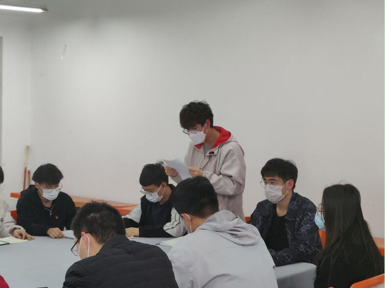 第一项议程预备党员转正大会:因近期疫情反复,为配合疫情防控要求,在校外实习而无法返校的周泓宇、臧梦浩、王霆雨三人采取视频连线的方式参加本次会议。会议开始后,由周泓宇、臧梦浩、王霆雨、王宇策4名同志宣读了转正申请书,汇报自己在预备期间的表现,总结了在思想上、工作上、学习上以及生活上的进步和不足,最后表达了自己对加入中国共产党的坚定决心和信念。随后,其入党介绍人分别介绍周泓宇、臧梦浩、王霆雨、王宇策4名同志在预备期间的表现;在无记名投票之后,周泓宇、臧梦浩、王霆雨、王宇策4名同志以全票通过转为中共正式党员。