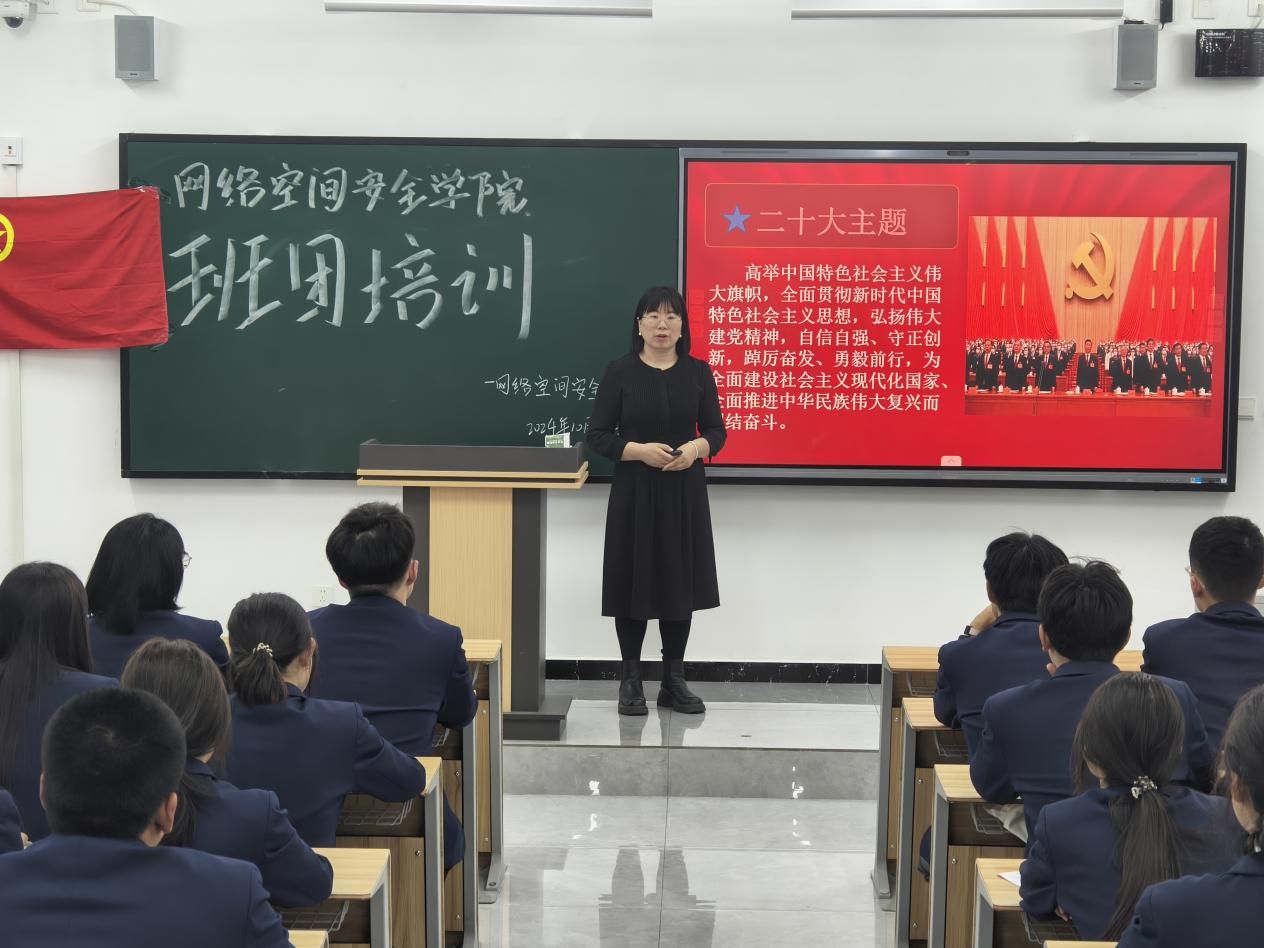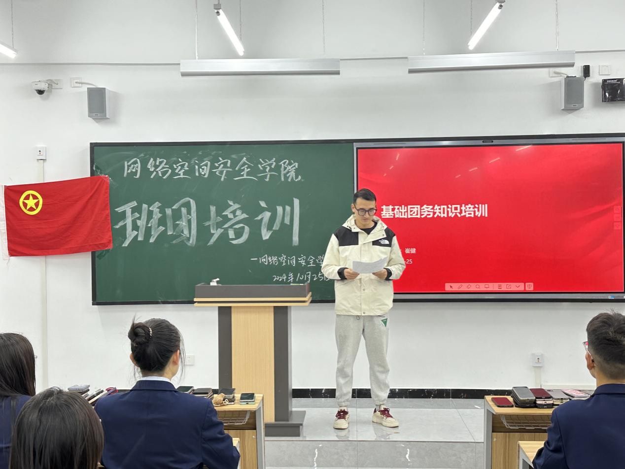 团总支书记崔健老师,进行了团章、团史等基础团务知识的讲解,强调作为团员骨干,不仅要有明确的责任意识和组织协调能力,更要有创新精神和服务意识。要始终保持对团队的忠诚和对目标的执着追求,以身作则、勇往直前地引领团队向着更高的目标迈进