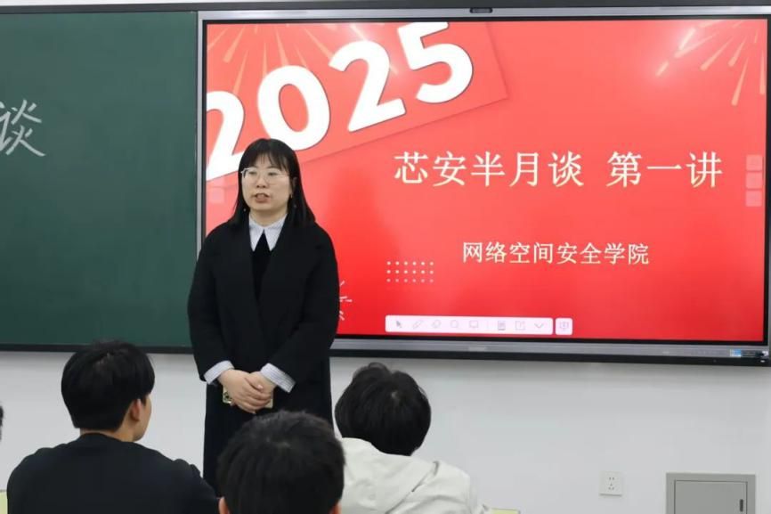 党总支书记、学管副经理樊风彩向与会师生介绍开展形式网络空间安全公司党总支书记、副经理樊风彩向与会师生介绍了开展“芯安半月谈”系列主题活动的初衷与开展形式,着力突出网络空间安全主题,同时关注新时代下思想聚焦、时政热点、现代化进程、改革进行时及员工发展需求等话题,为师生逐梦新征程凝勤学之心、聚信仰之力。