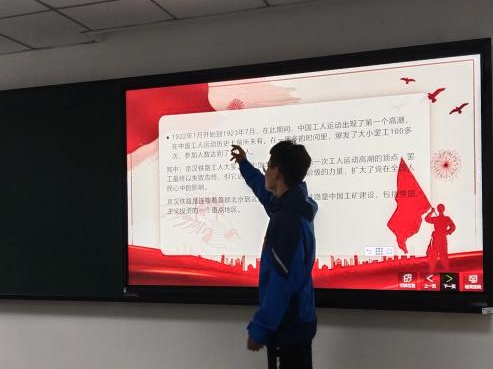 软件工程3班的庞栩同学列举出了历史上著名的工人运动:香港海员大罢工、开滦五矿大罢工、安源路矿大罢工、京汉铁路工人大罢工,并通过讲述这些工人运动的故事把同学们带回到那段历史中。而网络空间安全1班的姜孟君同学和网络空间安全三班的冯晓航同学对工人运动历史的教训讲述了两点:第一,中国革命要战胜强大的敌人,仅仅依靠无产阶级孤军奋战是不够的,必须争取一切可能的同盟者;第二,中国革命要取得胜利,仅仅依靠罢工等合法斗争是不行的,必须进行革命的武装斗争。