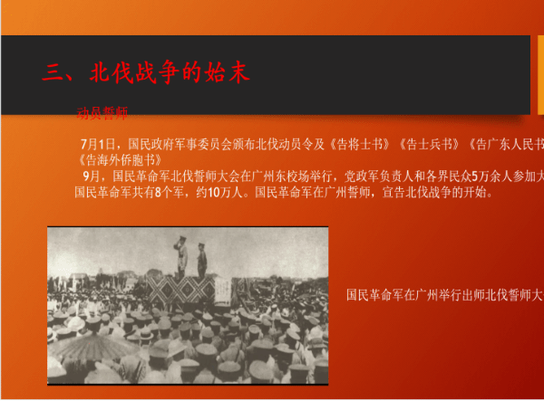 习近平总书记指出,“要把学习贯彻党的创新理论作为思想武装的重中之重,并同学习党史、新中国史、改革开放史、社会主义发展史结合起来”。针对2021年6月,中共中央办公厅印发《关于在全社会开展四史宣传教育的通知》,为此,球王会对“四史”宣传教育进行部署安排。今天的主题是——北伐战争。