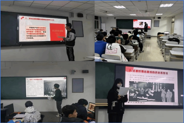 同学们认真听讲,积极发表自己的见解,就党的过渡时期总路线的发展历程进行深入思考,全面了解四史所传达出来的科学内涵和精神理念。党的过渡时期总路线是党的过渡时期各项工作的指南,同学们通过学习党的过渡时期总路线,全面了解了党在农业,手工业,社会主义工业化和对资本主义工商业改造的各项成就与思想见解,站在时代的角度上对百年党史进行了新的诠释。