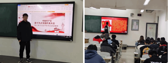 今日的四史教育专题活动为第八十九讲——“十九大”,为了给同学们更加生动形象的讲述“十九大”的相关知识,各位演讲者通过电子设备查询、图书馆翻阅相关资料等方式搜集了关于“十九大”的材料,制作了PPT,为大家展开了相关主题演讲。