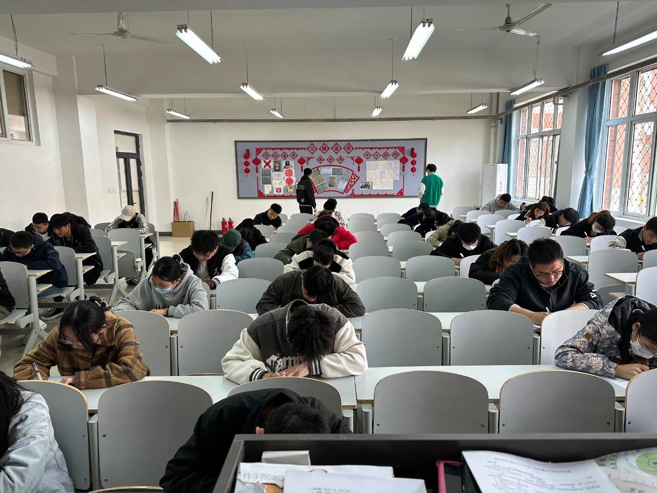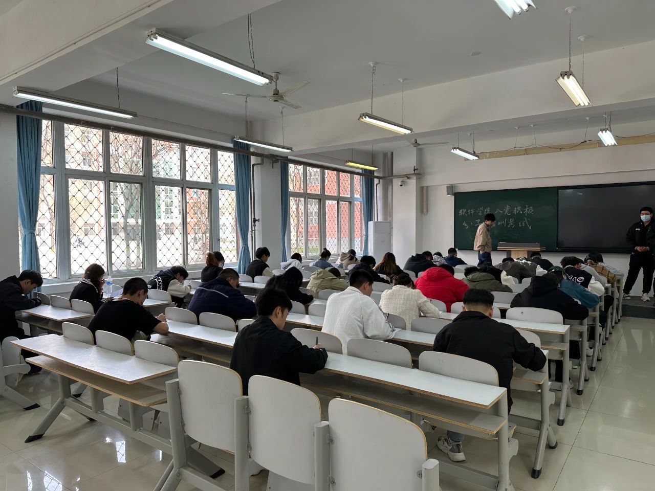 考试期间,同学们认真作答、态度端正,监考员们恪尽职守、公平公正,整个考场秩序井然。