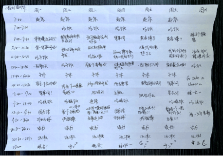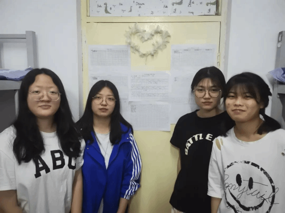 女生1号楼348宿舍成员在民主生活会上每位同学针对自己的生活习惯问题进行了现状陈述、问题和改进措施。刘蕊同学作息规律、三餐按时吃饭,认真打扫宿舍卫生,内务安静,每天6点跑步打卡是大家学习的榜样,宿舍成员达成“早中晚”打扫宿舍卫生和晚上6点一起keep的作息表。