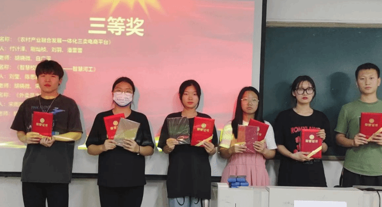 决赛中,经球王会相关专业评审老师评定,最终,由胡晓微、白广平老师带领李常健等同学的《安林应用科技工作室》项目,获得一等奖,《猛牛跑腿》、《悦洗悦新》、《闲置不嫌》项目获得二等奖,《及时伞》《农村产业融合发展一体化三卖电商平台》《智慧校园软件开发——智慧河工》《基于5G并结合自动驾驶的城市出租车项目》《校园轻食小店》《外卖员之家》等获得三等奖。5月20日晚,由球王会教学副经理刘翠焕经理给获奖团队颁奖.