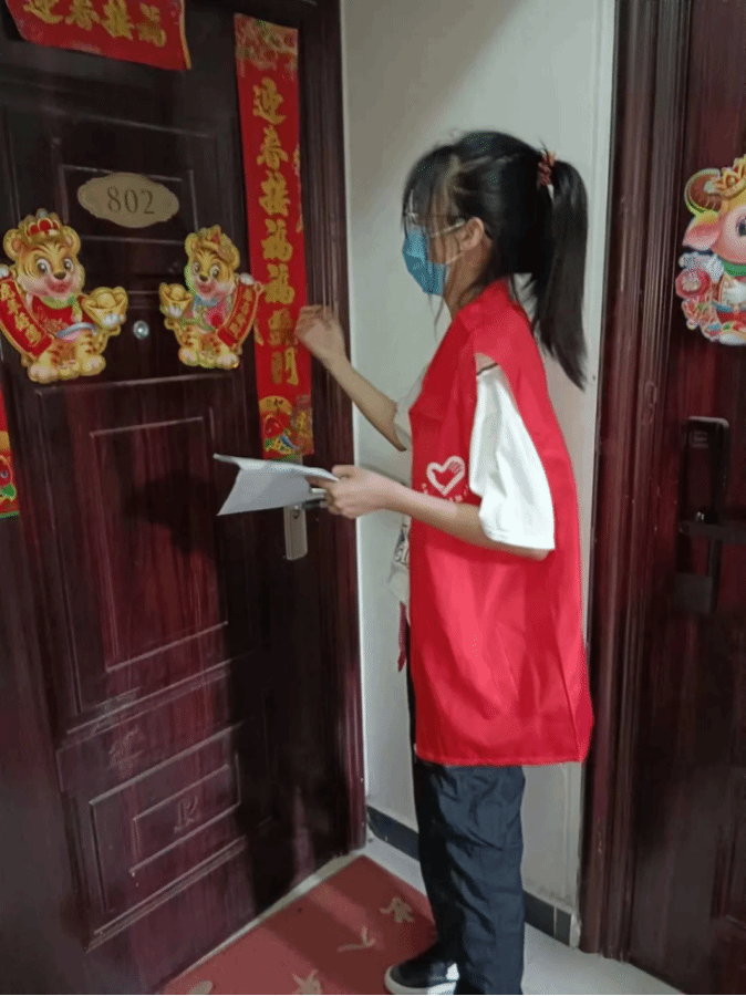 周芮颉同学还尽心尽力地宣传疫情防控知识,和其他志愿者们一起精诚合作,耐心地为社区居民讲解科学防控的相关知识。社区居民对她的评价是“她不仅是一名出色的志愿者,也是一位细心的小朋友”。