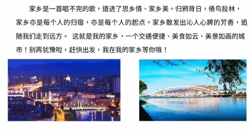 活动开始通过互联问进行宣传,吸引大家关注。在参加活动过程中,通过编写作品时的查询资料和图片,可以使同学们能更深刻的了解到了家乡的美丽和加深对家乡这片土地的热爱,同时在一些优秀作品的同时也能感受到了同学们对家乡的爱恋,通过他们对家乡的介绍和赞美,看到了同学们心中那片心心念念的土地的美好与眷恋。