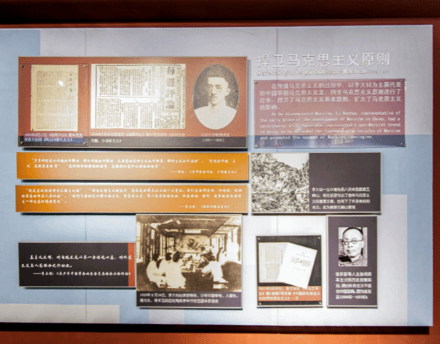 李大钊纪念馆第二展厅涵盖了李大钊同志寻找真理、传播真理、捍卫真理的毕生追求。从“中国最早的马克思主义传播者”到“中国共产党主要创始人之一”,从“促成革命统一战线”再到“领导北方革命运动”,四个专题,四则短句,向我们展示了李大钊同志坚持真理、坚守理想、短暂却壮烈的一生。