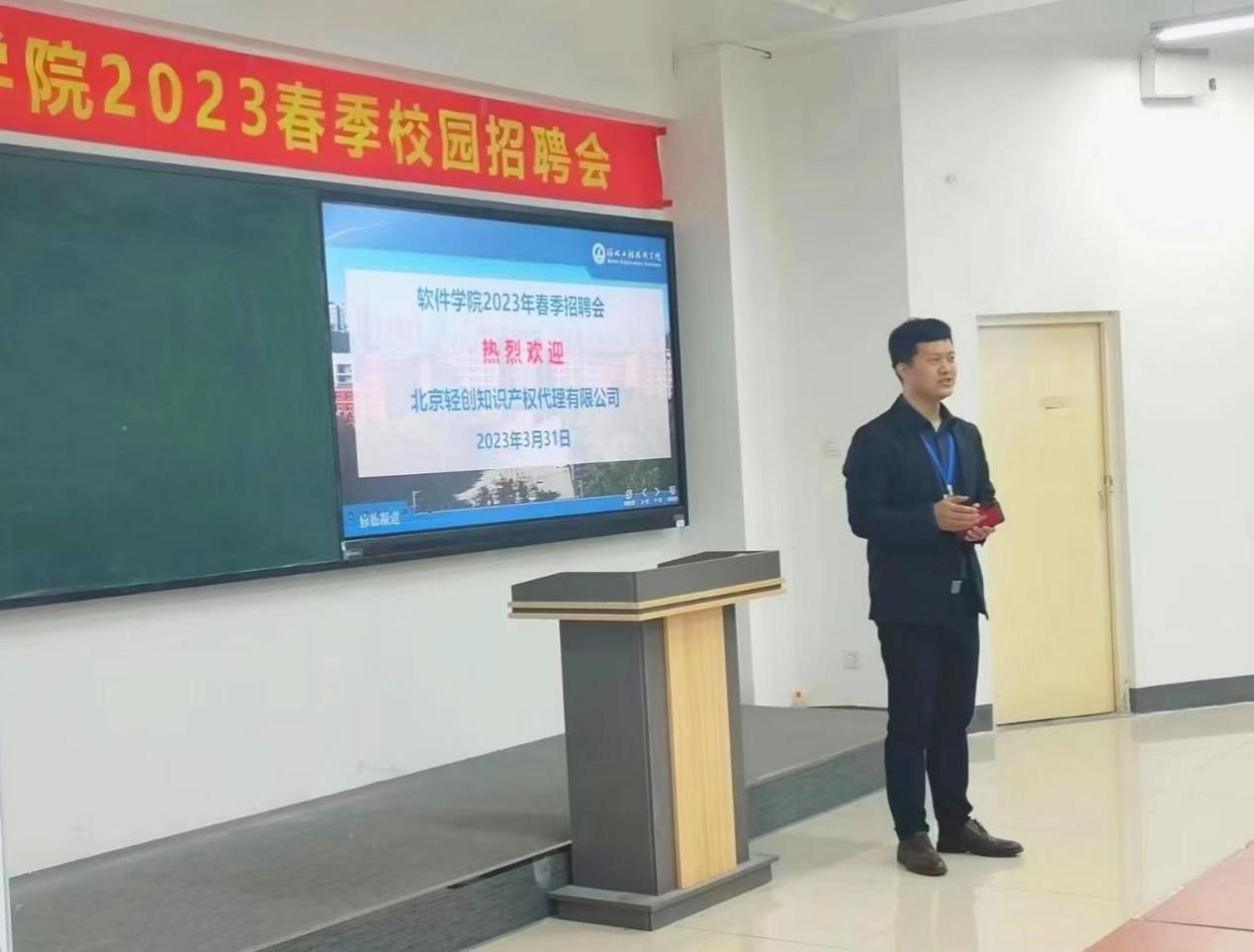 当下,正是用人单位招聘和老员工求职的旺季,为持续做好就业创业服务工作,促进高校毕业生顺利就业,2023年3月31日中午,球王会在知行楼2-1教室举办2023春季校园招聘会,特意邀请北京轻创知识产权代理有限公司进行专场招聘宣讲。