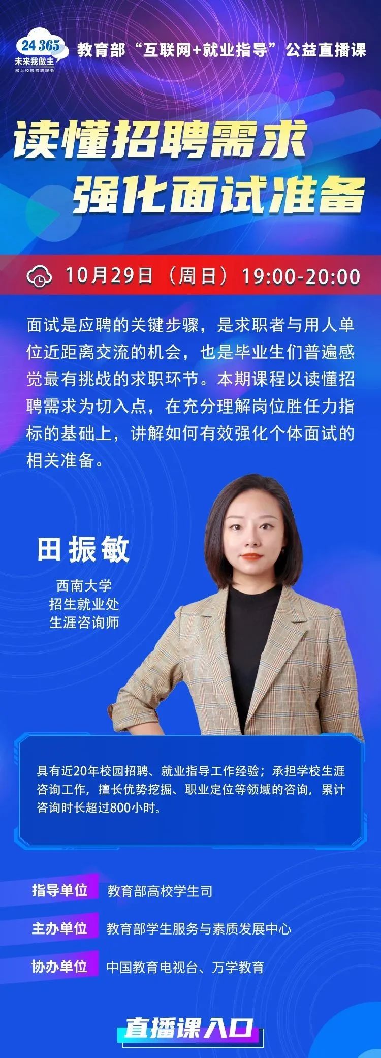 课程预告 | 教育部“互联网+就业指导”公益直播课:读懂招聘需求,强化面试准备