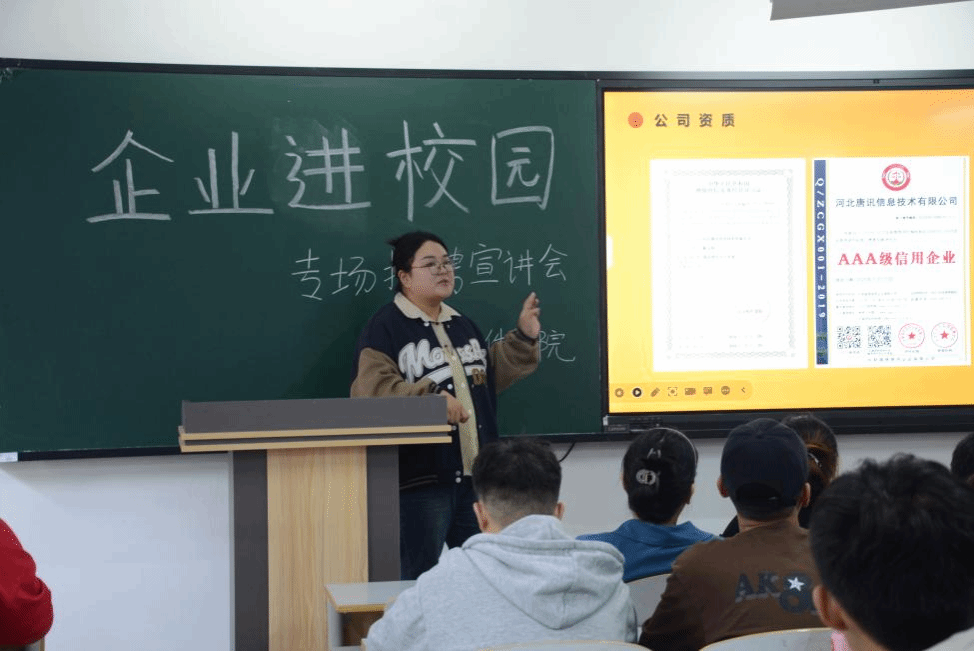 为进一步加强校企联系与合作,为毕业生求职和用人单位招聘人才搭建平台、提供更好的服务,切实做好员工就业教育,培养新时代高素质技能型人才,丰富公司产品内容。2023年10月31日,球王会官网邀请河北唐讯信息技术有限公司于次教111举办“企业进校园”专场招聘宣讲会。
