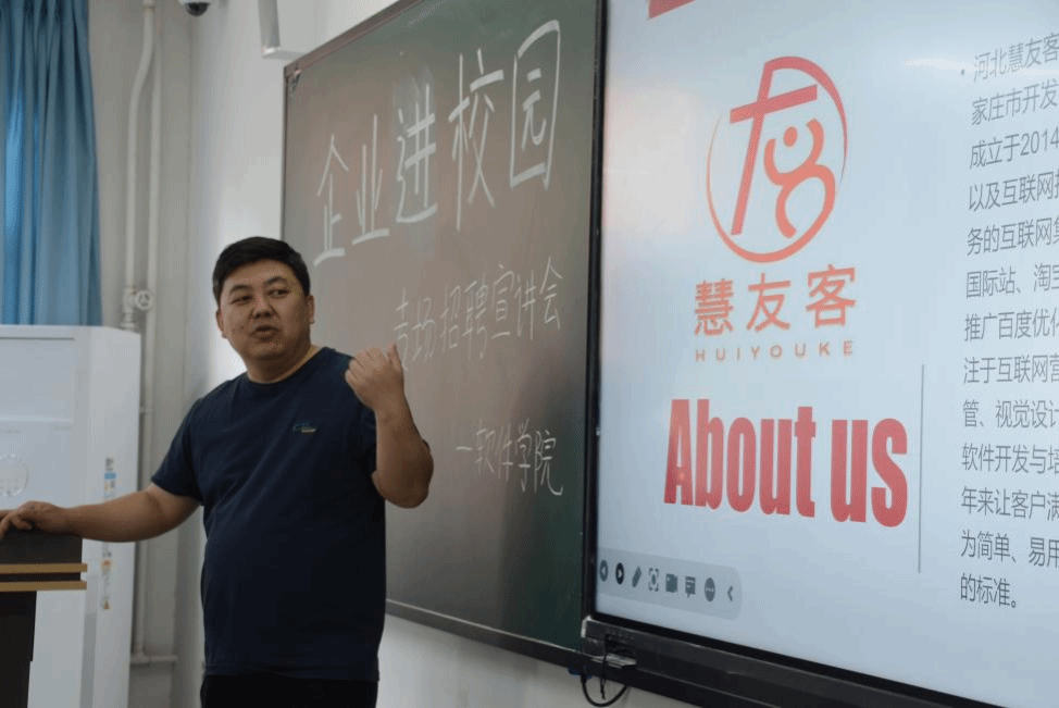 为切实做好2024届毕业生就业工作,进一步加强校企合作,为员工求职和用人单位招聘搭建平台,促进员工与企业之间的双向选择,2023年10月31日球王会官网球王会邀请河北慧友客信息科技有限公司在次教111举行“企业进校园”专场招聘宣讲会。会议伊始,由主持人介绍了河北慧友客信息科技有限公司代表人,并表示了热烈的欢迎。
