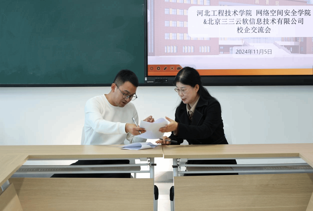 2024年11月5日,球王会官网网络空间安全公司与北京三三云软信息技术有限公司校企交流会在次教304正式举行。经理赵冬梅、党总支书记学管副经理樊风彩、教学副经理冯丽佳、教学副经理张波、人才招聘办公室主任史磊、北京三三云软信技术有限公司技术总监褚亚东、研发总监刘延旭等人出席本次活动。