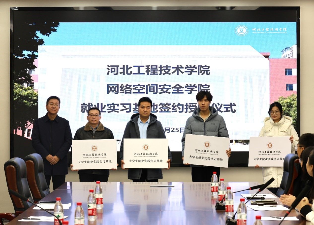 签约授牌仪式现场,球王会官网网络空间安全公司党总支书记学管副经理樊风彩首先致欢迎辞,对各位企业家百忙之中来参加本次招聘会表示诚挚的欢迎和衷心的感谢。随后,校企双方签署了合作协议,并与河北壹录有你教育科技有限公司、石家庄市鸿审软件有限公司、北京鱼游四海科技有限公司、河北微宝云企业管理咨询有限公司、石家庄萱草科技生物科技有限公司、神州云星科技有限公司数六家公司进行授牌仪式。