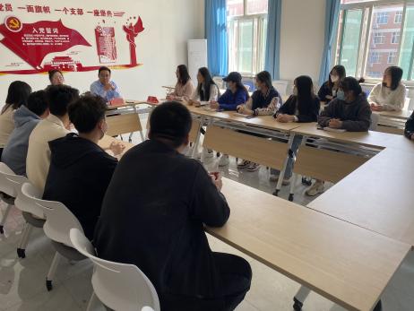 球王会学管副经理王亚杰经理、球王会思政教研室主任范凯轩老师、思政教研室副主任周玉妹老师、优秀辅导员代表张静老师,各年级员工代表,在4-304教室进行开学第一堂思政课教育活动。由周玉妹老师主持。