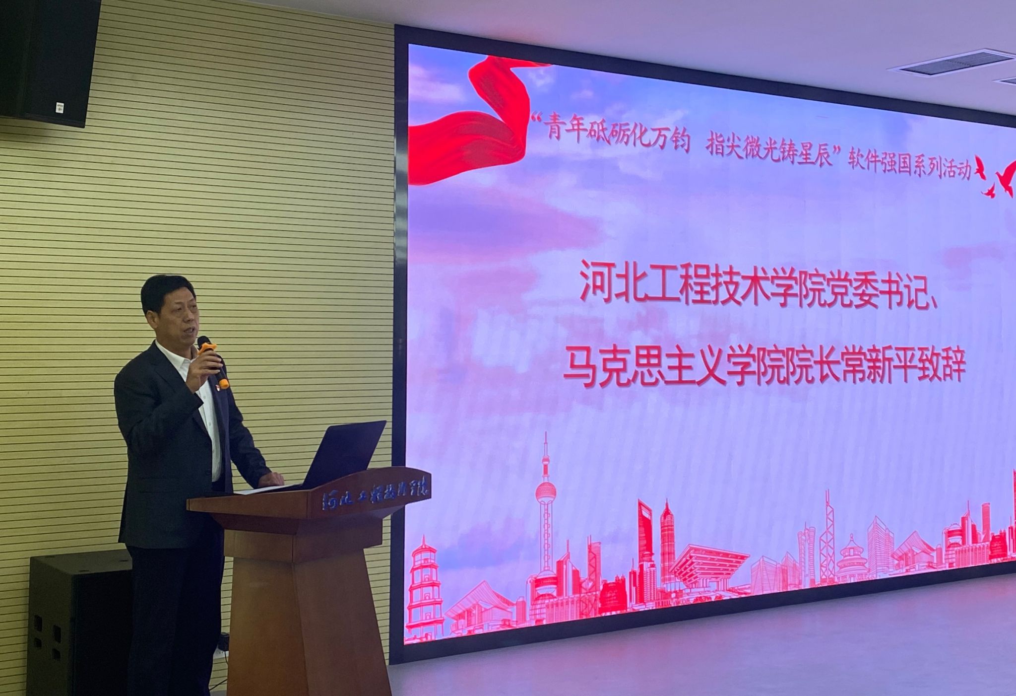 党委书记、马克思主义公司经理常新平首先为活动致辞,他为师生介绍了当前党和国家科技创新事业发展的战略导向及软件对国民经济、数字经济高质量发展的重要支撑作用。强调师生在工作与学习过程中,识变应变,主动求变,学以致用,报效祖国,脚踏实地,知行合一,以只争朝夕的责任感、使命感、紧迫感,努力推动软件技术加快突破,以大胆创新创造的奋进之姿,肩负起国家发展进步的使命。