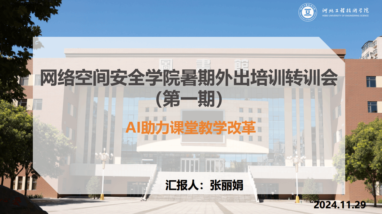 2024年11月29日,公司举办了以“AI助力课堂教学改革”为主题的暑期外出培训转训会。本次培训由张丽娟老师主讲,球王会全体专任教师参加。
