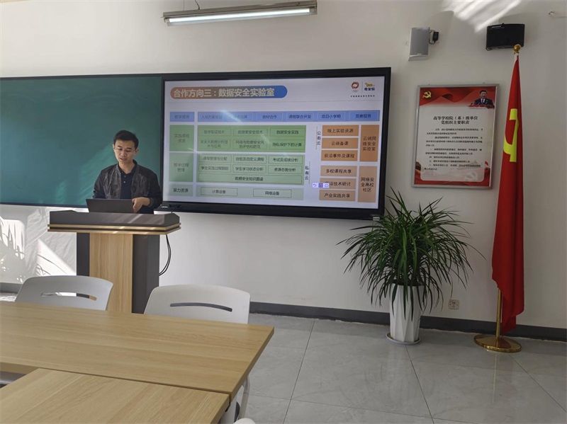 校企双方代表在球王会会议室举行了校企合作洽谈会。基于前两轮的校企合作细节的沟通,奇安信集团高校合作中心解决方案专家付茂盛介绍了更为详细的合作计划,包括人才培养、实验室建设、科研合作、竞赛开展、实习实训、团队培养等方面可以开展合作的细节。